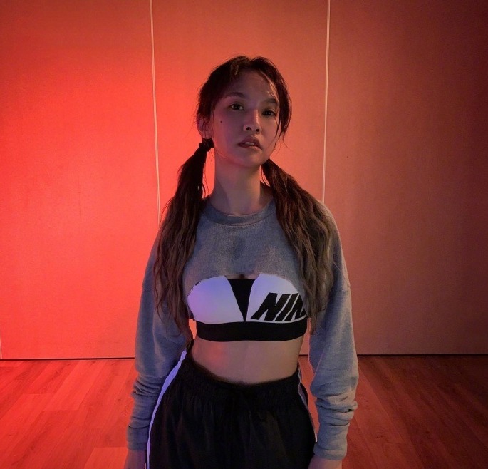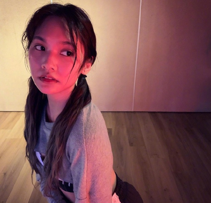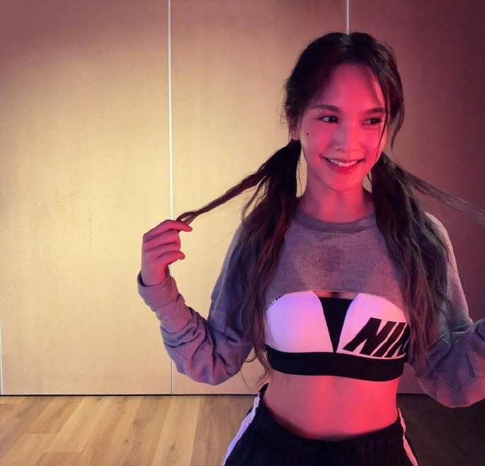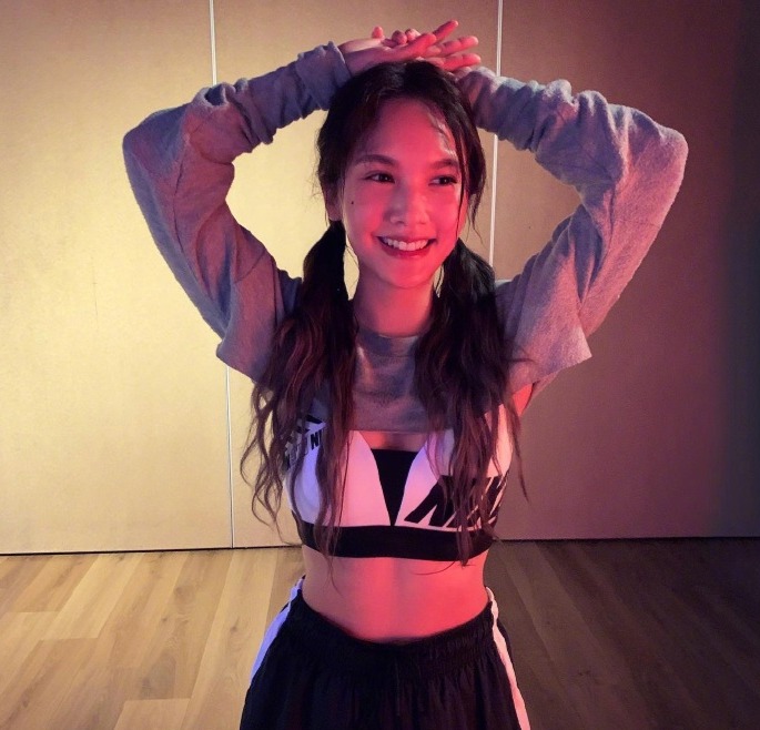 照片中,杨丞琳扎着双马尾,少女感十足,身穿性感款运动背心搭配运动裤,露出性感的腹肌。