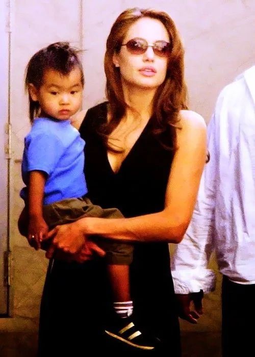 这时候抱着一个小小孩的朱莉出现了,每个毛孔都透着狂野的大美人,同时又是一个充满柔情的母亲,这对“永远长不大的孩子”皮特来说,简直是一万点暴击。