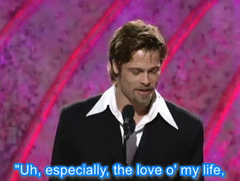 显然皮特在领奖时对自己的这番调侃,是意指和朱莉那段失败的婚姻。 但电视直播只能CUE另一个前妻,一个中年男人懊悔没能留住家庭、孩子的碎碎念能有什么意思? 当然还是两位大明星旧情复燃的故事好卖。