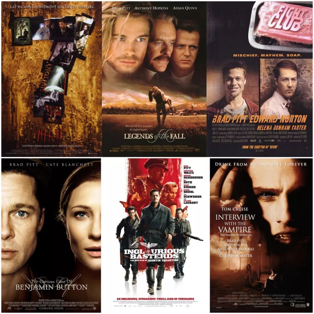 ▲在我心目中,皮特最好的片子是这六部,趁宅在家,大家一定要看,每一部都是绝世好片。(《七宗罪》、《燃情岁月》、《搏击俱乐部》、《本杰明·巴顿奇事》、《无耻混蛋》、《夜访吸血鬼》)