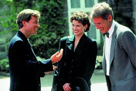 ▲《情定巴黎》里,一向演冒险题材的哈里逊·福特居然演起了言情片。 这哪像豪门公子竞相追求大美人,更像是金融公司的高管在开会。