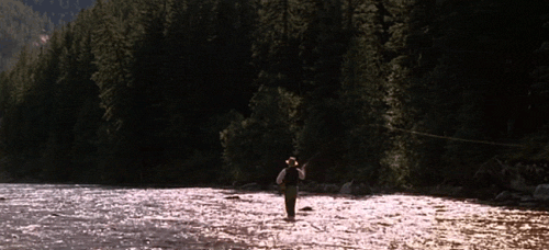 ▲皮特在《大河恋》(A River Runs Through It)里“钓鱼”的镜头。 他的少年时代大概就是这样度过的,和美丽的大自然无忧无虑地相处。