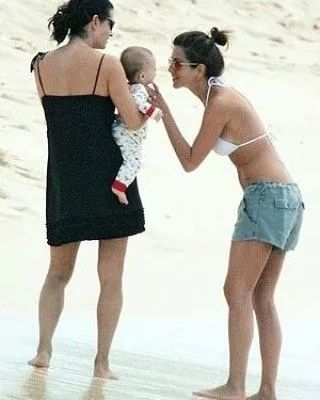 ▲偷拍她和好朋友莫妮卡(Courtney Cox)一家人去度假,嘲笑她不会抱孩子。