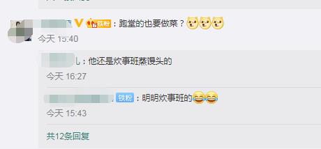 评论里,有网友调侃道:“跑堂的也要做菜?”,另外一个网友回应道:“他还是炊事班蒸馒头的”。