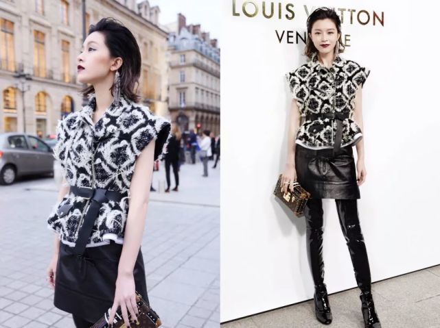 她的身材气质,确实很适合这种略显前卫的个性穿搭。