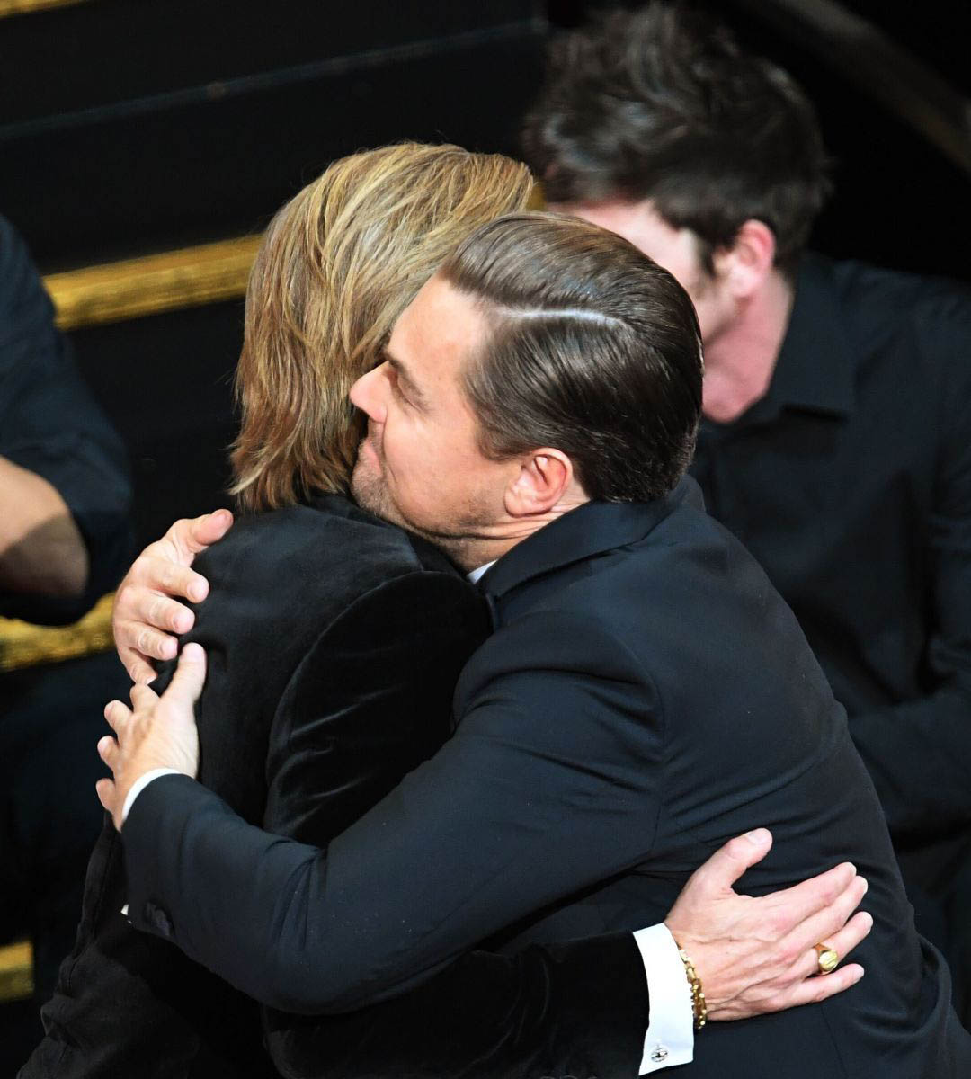 小李子和皮特在现场拥抱引起了阵阵掌声,两位熟悉的人物再次出现在奥斯卡,都已经有了一丝丝的老态,不过好在风采依旧,男神范十足。