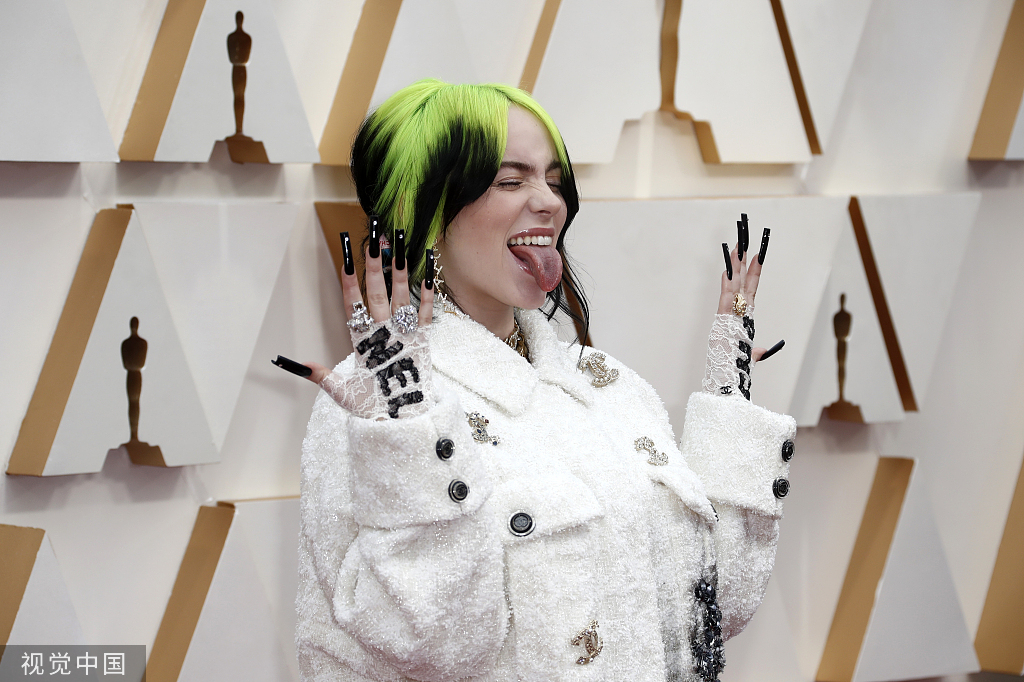 个性十足的新生代乐坛小天后“碧梨”Billie Eilish亮相奥斯卡红毯。