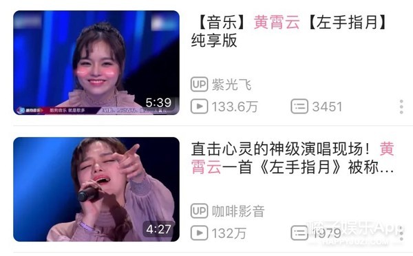 黄霄云出圈作品是翻唱《左手指月》,在B站播放量还挺高的。