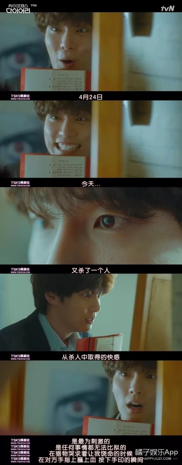 总之,怕死的憨憨逃离天台时无意间撞见了杀人魔犯案现场,捡到了对方的日记。