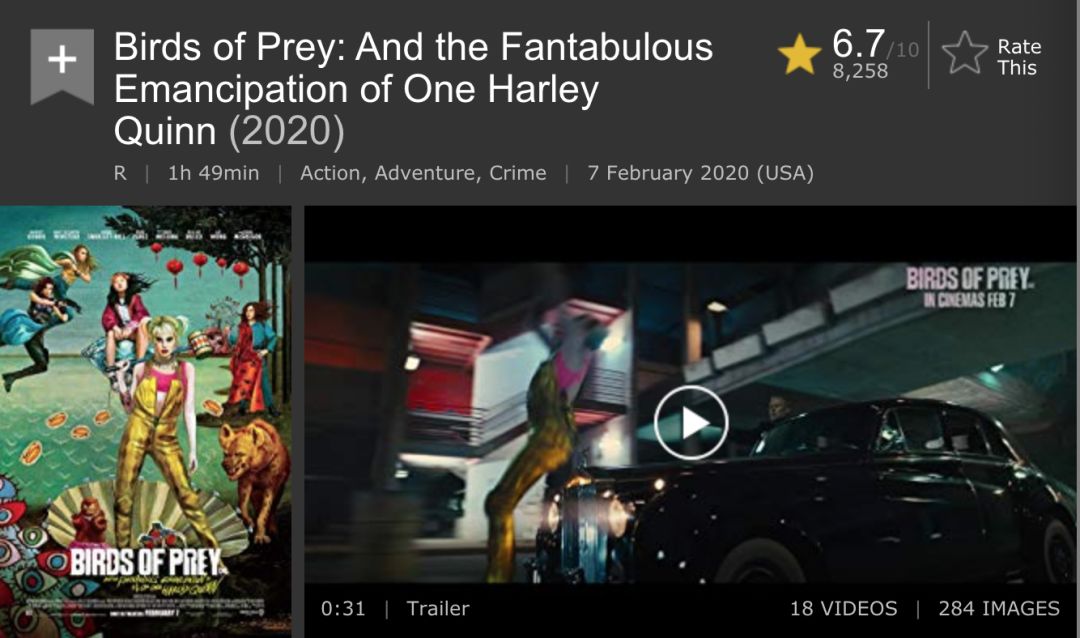 那就是我们今天要介绍的《猛禽小队和哈莉·奎茵》Birds of Prey (And the Fantabulous Emancipation of One Harley Quinn) (2020)