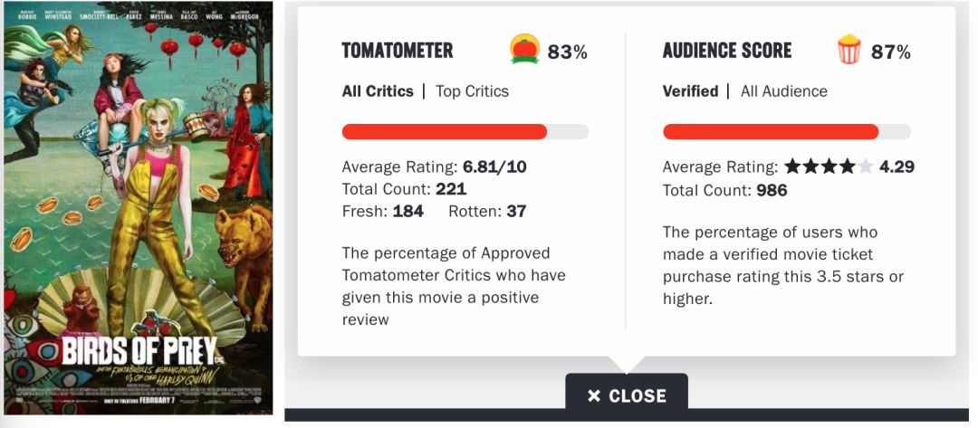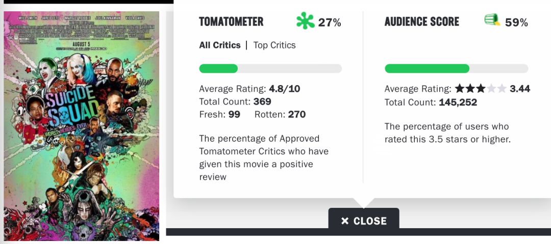 感受下当初《自杀小队》的烂番茄评分。