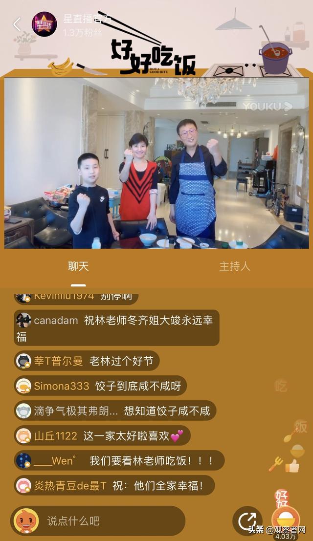 2月8日是正月十五元宵节,也是阖家团圆的日子。中午12点,林永健一家三口亮相优酷首档全明星公益直播《好好吃饭》。直播中,林永健亲自上阵大秀厨艺,林永健的妻子周冬齐“老周”和儿子大竣,也与前来“云串门”的网友们热情互动,陪伴大家度过了一个温馨而特别的元宵佳节。