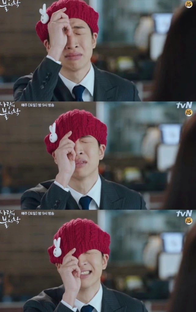 追金舟墨星成功,还致敬最爱的韩剧《天国的阶梯》中权相佑扮演的男主角,拉下红色毛帽遮眼泪的经典桥段。