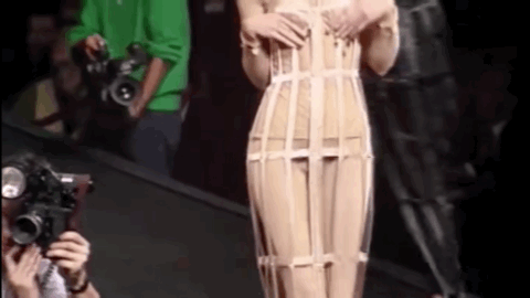 高缇耶对古典元素的运用,可谓是信手拈来,比如说,裙撑和束腰。