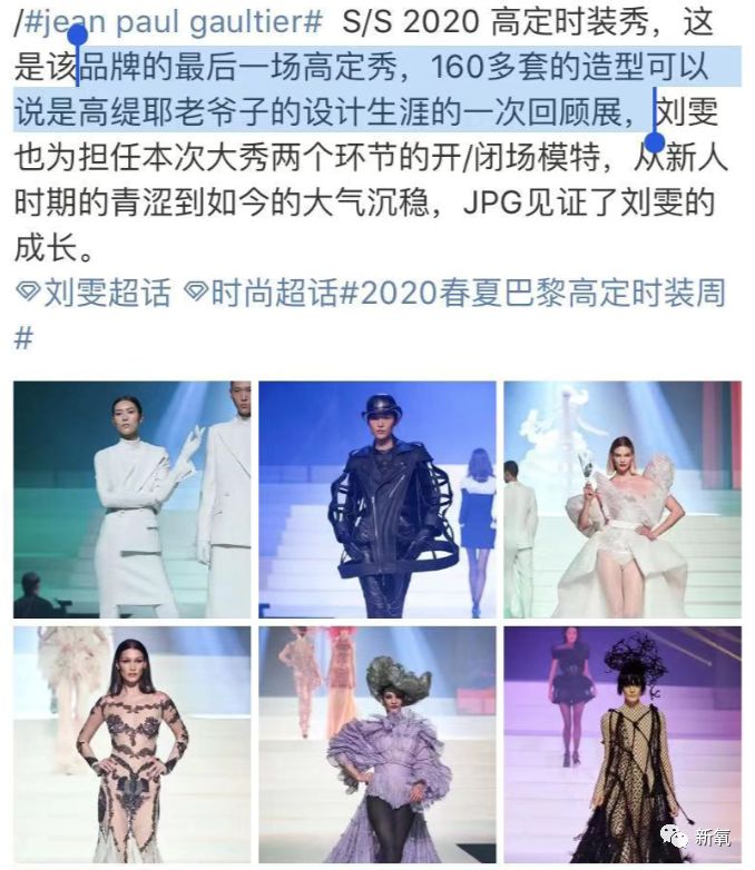 在今年这最后一场高缇耶高定秀中,刘雯更是担任了两个环节的开/闭场模特。