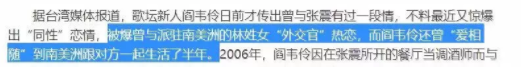 没多久,张震 就 跟一个叫阎韦伶的歌手在一起了。