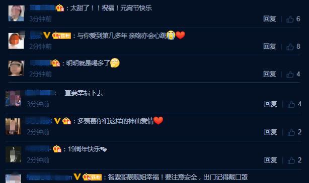 被张智霖和袁咏仪甜到的网友看后也是纷纷留言评论,“太甜了,祝福,元宵节快乐”“与你爱到第几多年,亲吻亦会心跳”“多羡慕你们这样的神仙爱情,白头到老”。