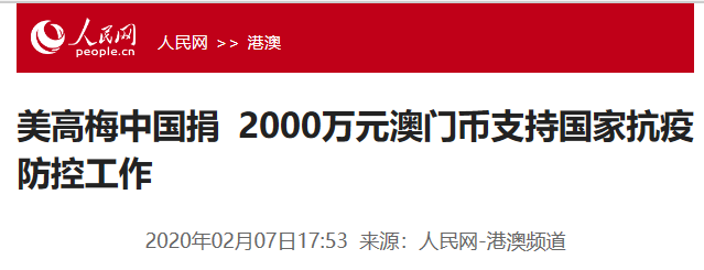 2月8日,赌王何鸿燊二房长女何超琼以自己名下产业美高梅的名义,向湖北捐赠了2000万澳币,约合人民币1700多万,获得好