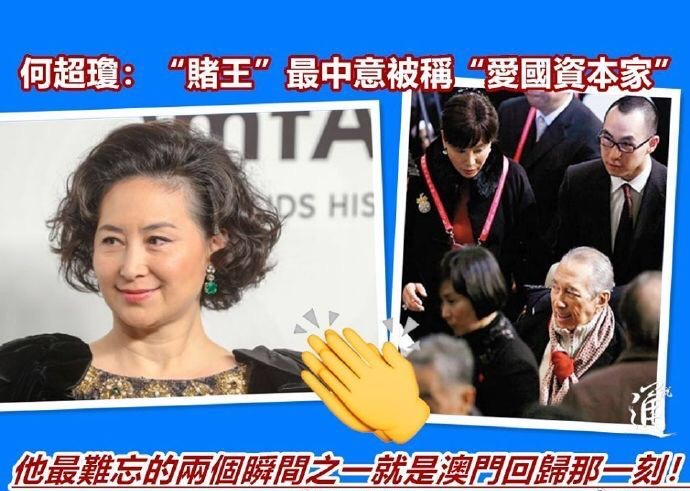 赌王何鸿燊家财万贯,而他一生中最喜欢别人称他为“爱国资本家”,他也曾经通过二房长女何超琼表示过,自己一生中最难忘的两个瞬间之一就是澳门回归那一刻,可见其浓厚的爱国情怀。