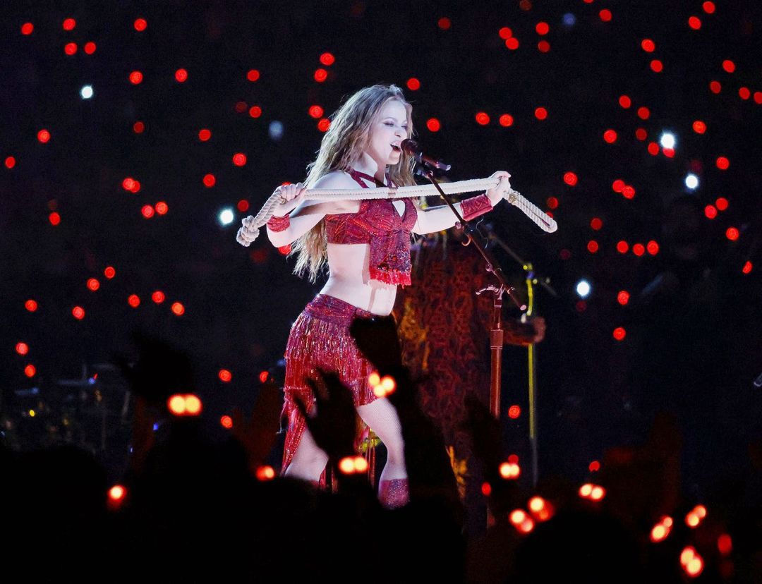 狼姐对皮克也满满的都是爱啊。她在这次超级碗中场秀穿的那双鞋,是15年前买的,这是她最喜欢的一双靴子,因为她就是穿着这双靴子遇见皮克的。