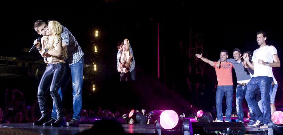 皮克看狼姐的演唱会,狼姐在所有观众面前把歌词改成了“我为皮克而疯狂”,还把他请上台抱抱。