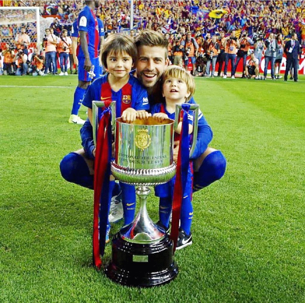 后来,还多了两个电灯泡。在一起两年,皮克就让狼姐当了妈。现在大儿子米兰7岁,二儿子萨沙5岁,浓眉大眼的,特可爱。从小跟着老爸在球场混得很开。