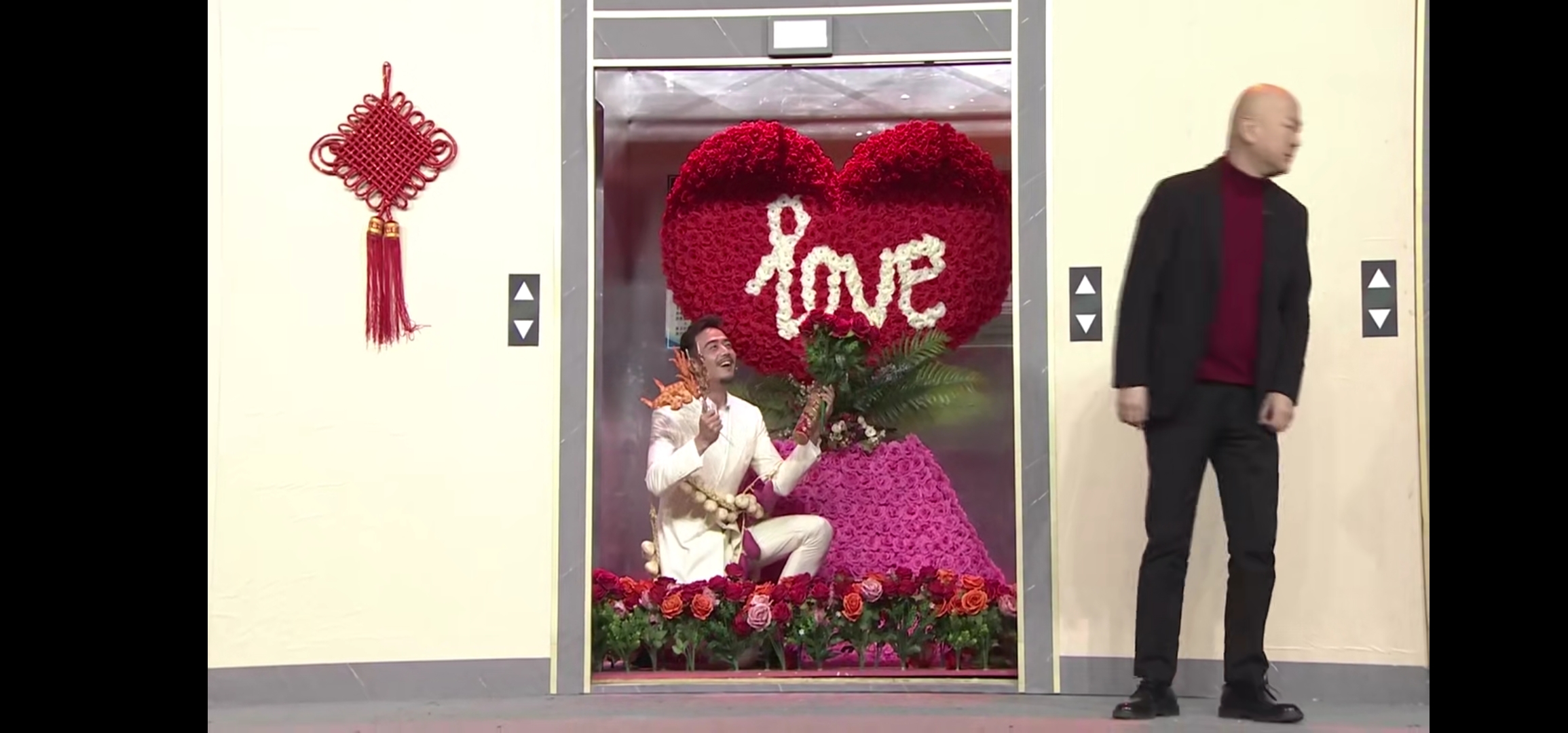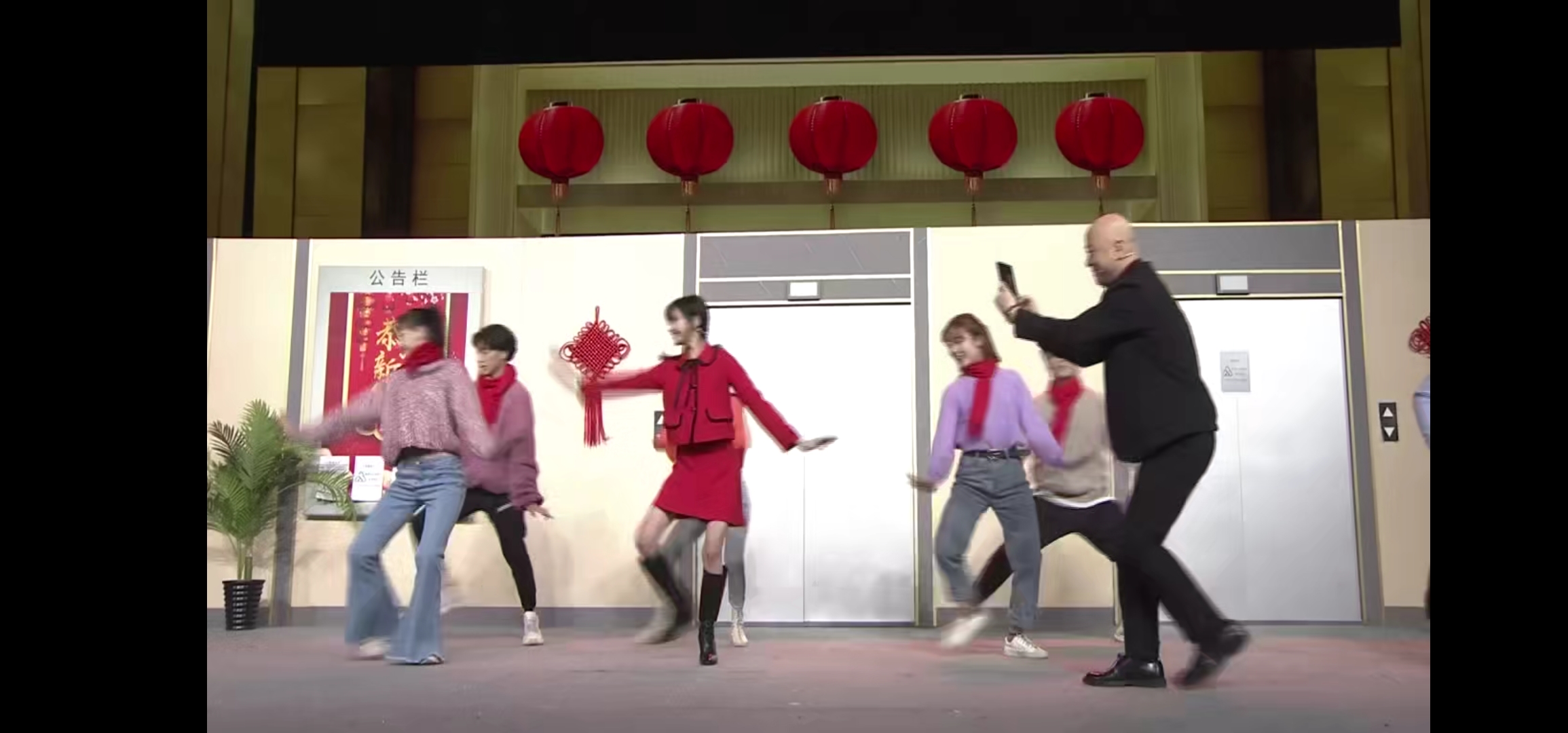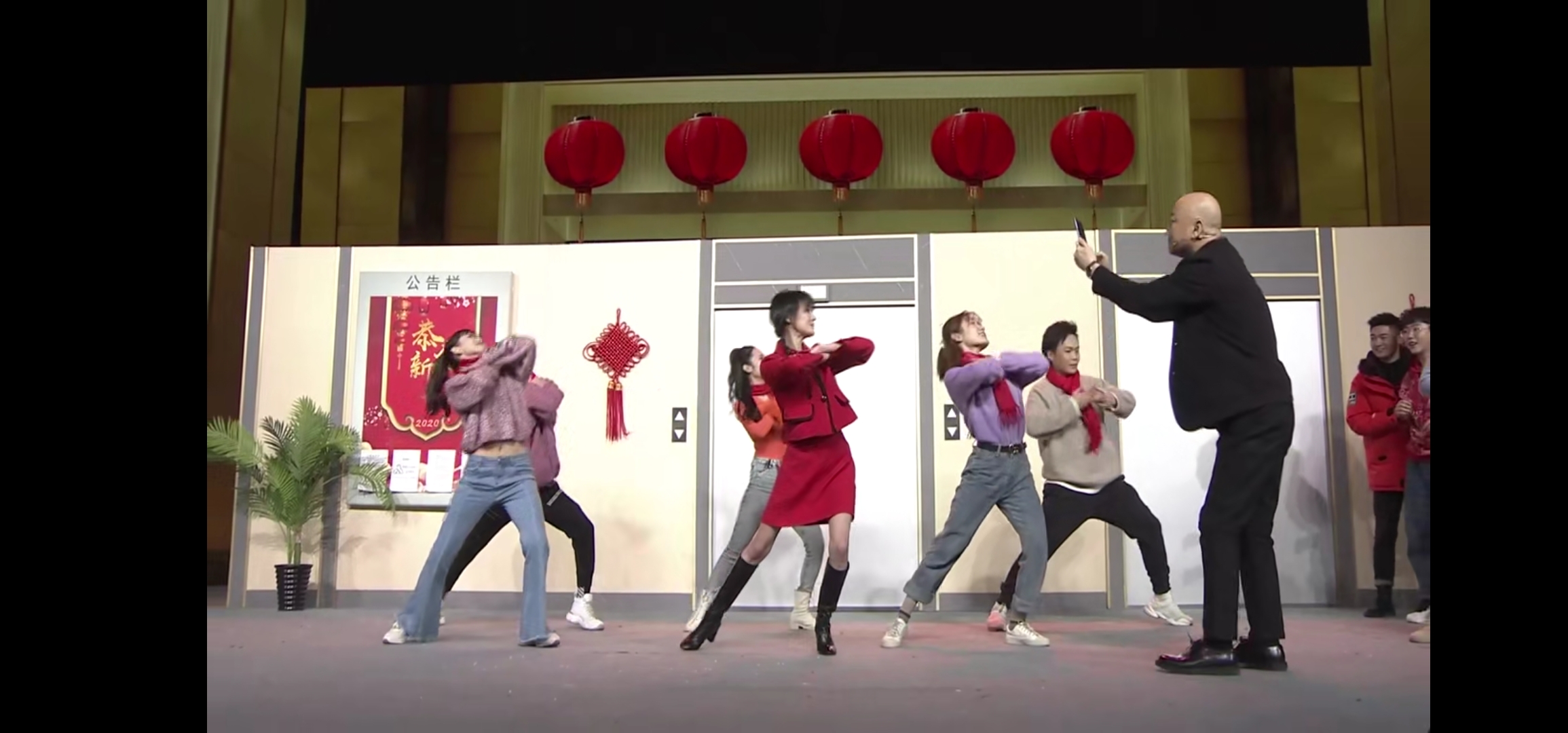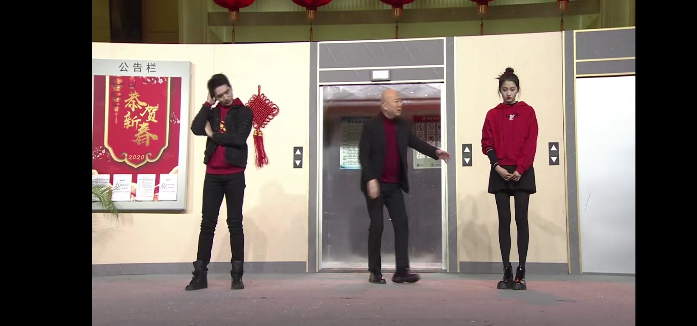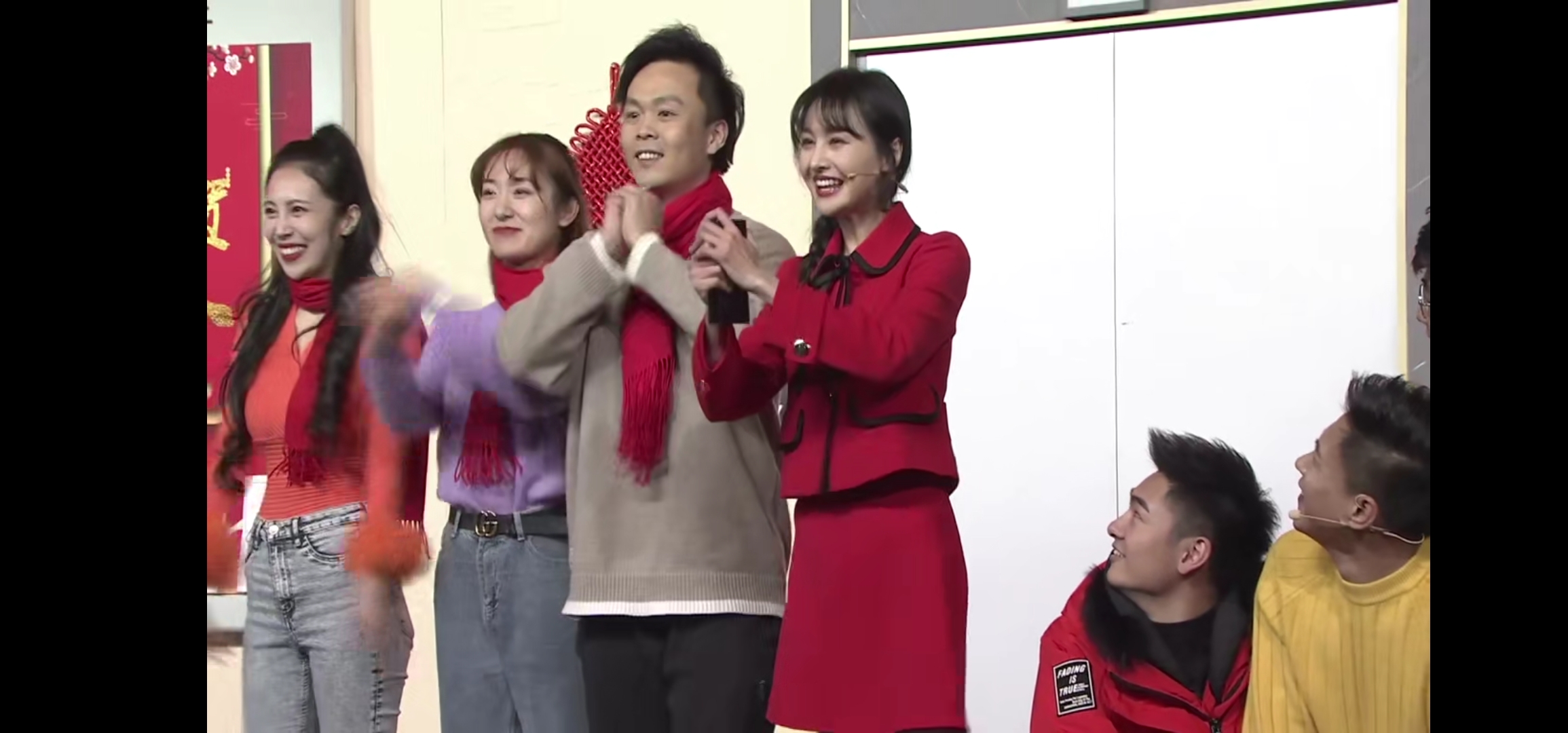 在表演结束之后郑爽还笑呵呵地向大家拜年,爽妹子的笑容还真是甜甜甜啊!一旁男演员的表情是我没错了。