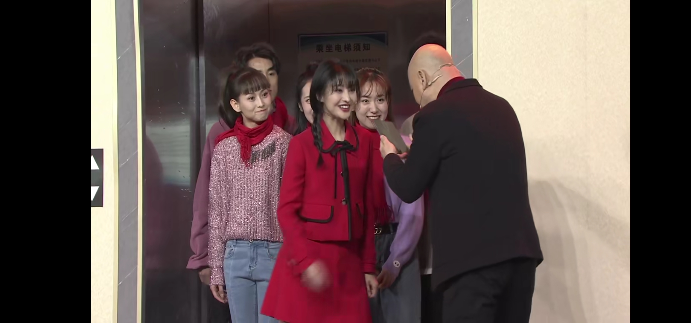 在这段春晚小品中,最让大家期待的自然是郑爽。郑爽初次为春晚准备节目,扎着麻花辫,穿着红色套装小裙子,活脱脱古灵精怪的可爱少女,从电梯里一出来就带着喜庆的笑容,让人眼前一亮~