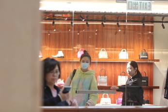 她衣服宽松孕肚并不十分明显,身材仍十分纤瘦。