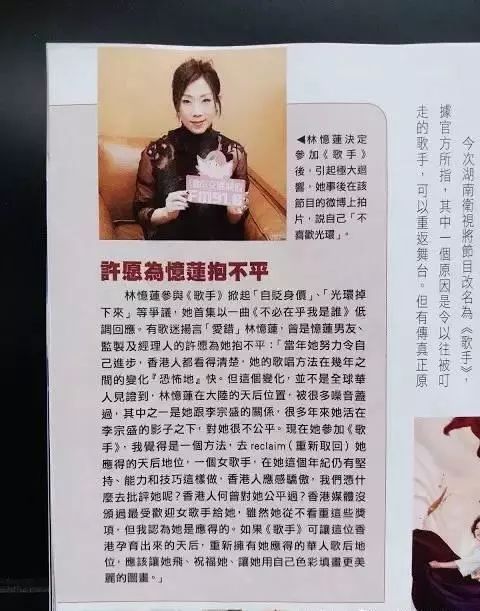 林忆莲和许愿在一起四年,分开后许愿依旧很支持林忆莲的事业。17年林忆莲参加内地某歌唱节目引得香港群众骂声四起,许愿却站出来为她抱不平。