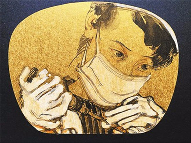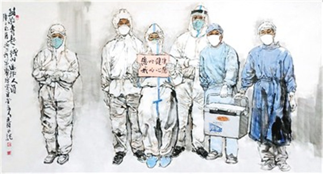 《致敬奔赴一线医护人员》(中国画)。王珂作(图片来源:中国美术家协会官方网站)