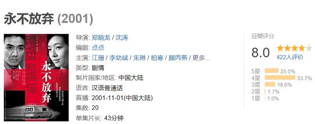 2002年他执导的《永不放弃》,江珊李幼斌主演,豆瓣8.0,至今依然是国产医疗剧的翘楚。