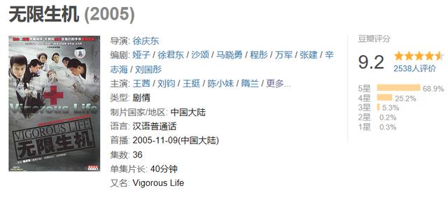 截止2020年播出的国产医疗剧豆瓣8分以上的只有4部,最高的是《重案六组》原班人马拍摄的《无限生机》,9.2分,但多数国产医疗剧在6分以下。