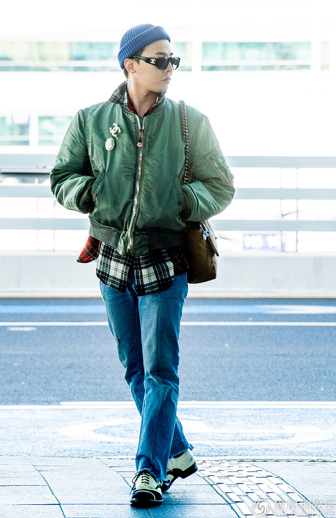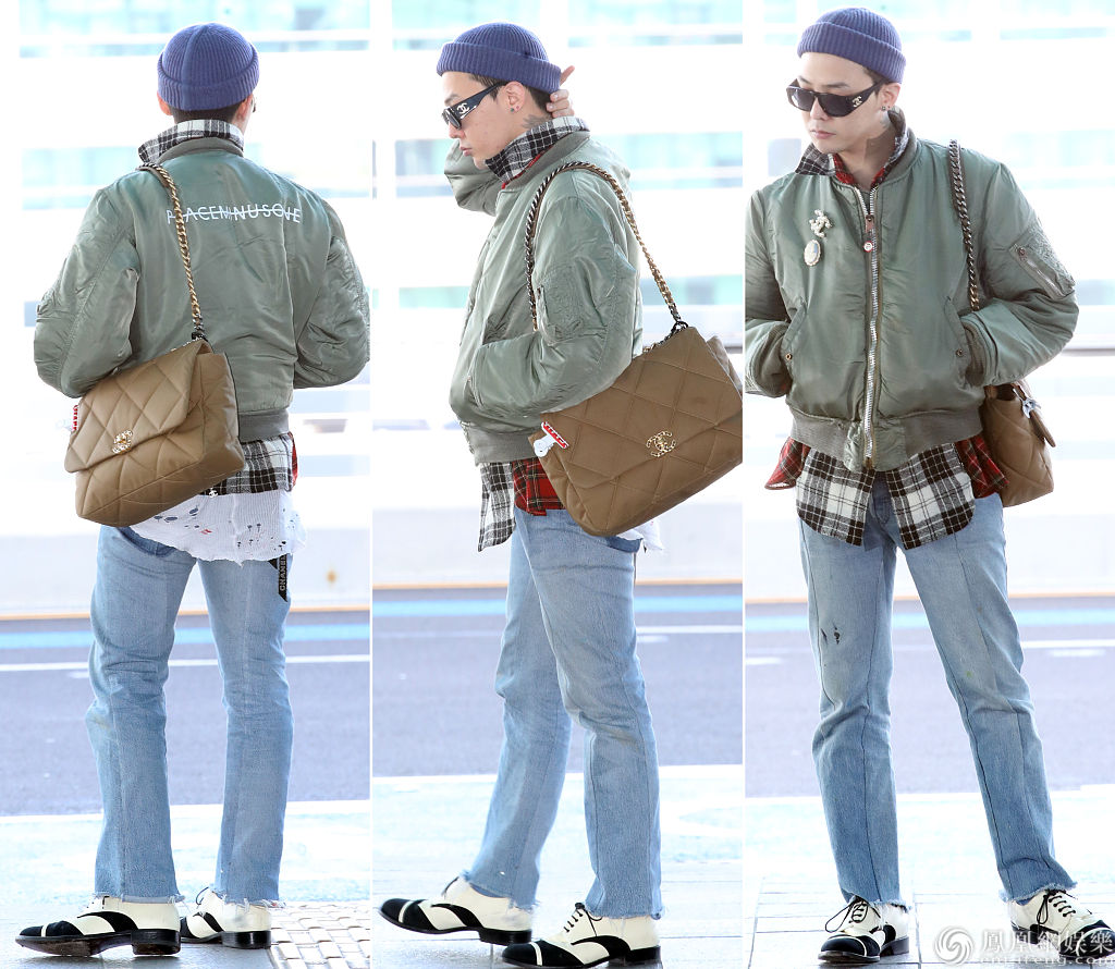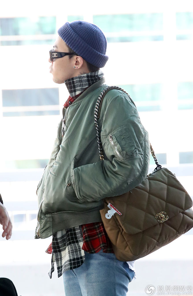 2020年1月17日,首尔,权志龙亮相机场,权志龙身穿绿色夹克叠穿格纹衬衫潮味十足,单肩斜跨一款女士链条包也是毫无违和感,边走边鼓腮卖萌,小表情萌翻