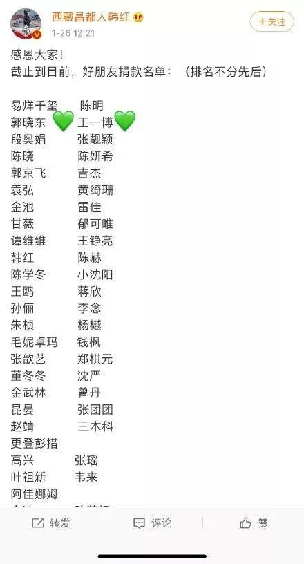 最近,武汉肺炎受到网友关注,大家纷纷伸出了自己的援助之手,娱乐圈的明星们也没闲着,时刻关注着武汉动态,只为在某一刻能够尽自己最大的力