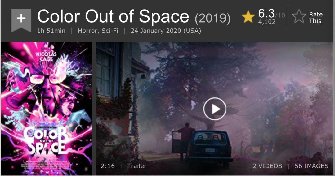 同时,如果你要是觉得这部《星之彩》无法让凯奇翻身,接下来,还有其他大量凯奇出演的电影可以期待,没办法,凯奇就是片子多。