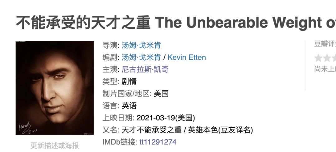 要知道,对尼古拉斯·凯奇的来说,他的新片可以豆瓣上6分,就算佳作了,厉害吧。