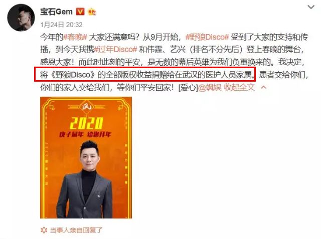 宝石gem还宣布,自己决定把这首歌的收益全部捐给武汉医护人员及其家属,希望能和武汉人民一起共渡难关~