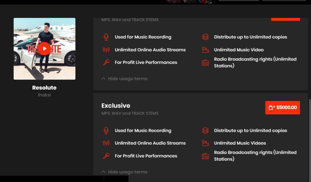 但在那个网站上,99美元的unlimited和5000美元的"Exclusive",虽然价格差了50倍,但权益内容却一模一样,且其中都包含了这次最大的争议点之一,即"For Profit Live Performances",也就是商业现场演出的授权。