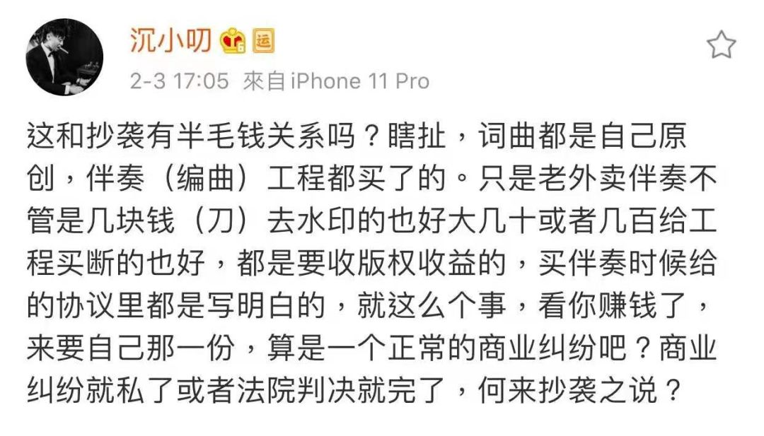 他称不管是当初参加《中国有嘻哈》的时候,还是后来在各大音乐平台上上架,自己都明明白白的标注了编曲人就是Ihaksi——