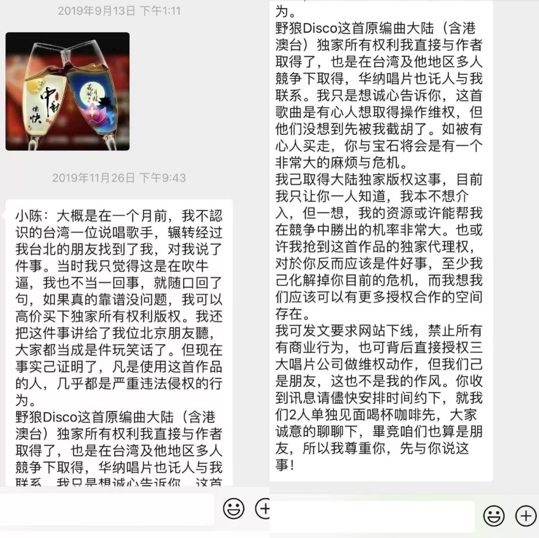 自己受版权方委托,已经向宝石Gem及其团队、以及宝石Gem的若干个合作方发送了停止使用侵权歌曲的律师函,希望大家保护版权,好自为之~