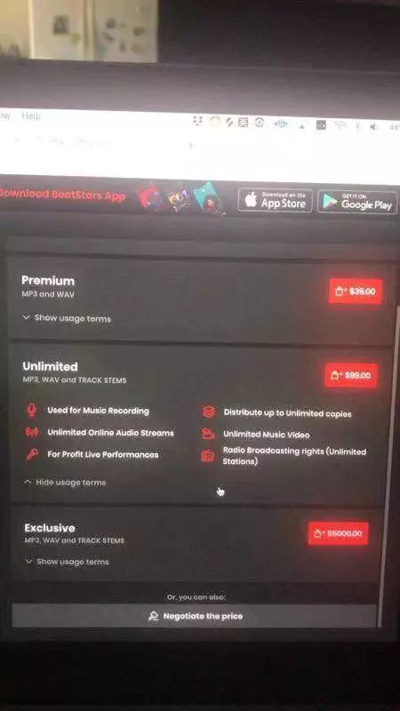 在宝石gem购买beat的那个网站上,Ihaksi将自己的Beat分为29美元、49美元、99美元和5000美元四个档位出售——