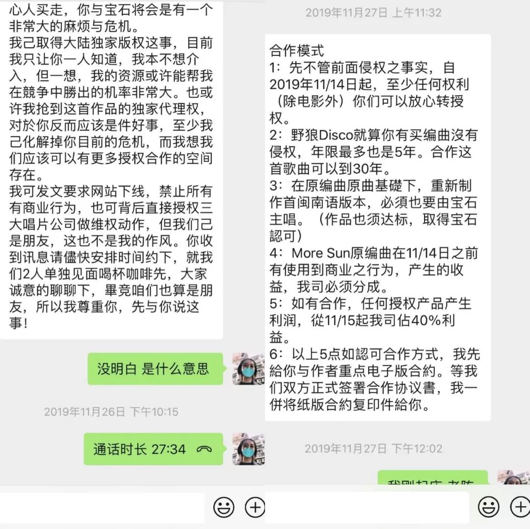 Ihaksi11月25日告诉宝石gem方面卖出了独家版权,而11月26日,便有一位陈先生找上宝石Gem的经纪人,称自己拥有独家版权,想进行合作。