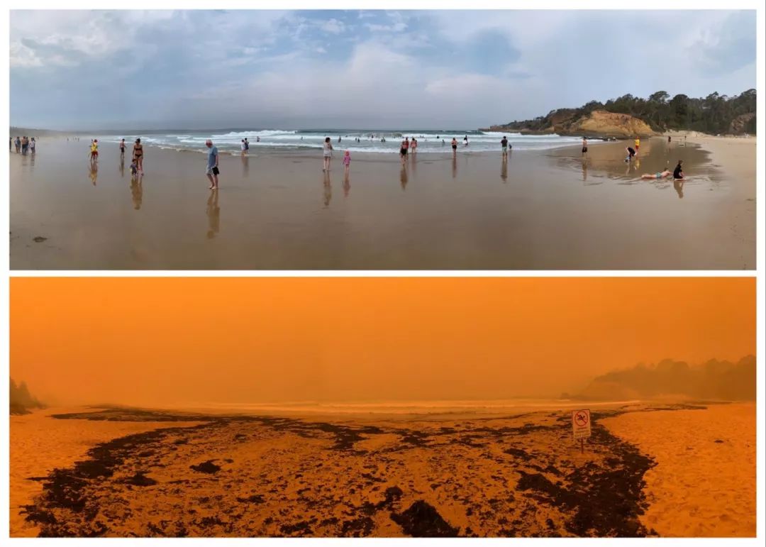 月初的澳洲, 山火熊熊燃烧了数月, 天空是骇人的红色, 数以亿计的动物丧生火海。