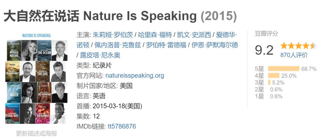 中文版第一季《大自然在说话》的配音阵容,同样强大:
