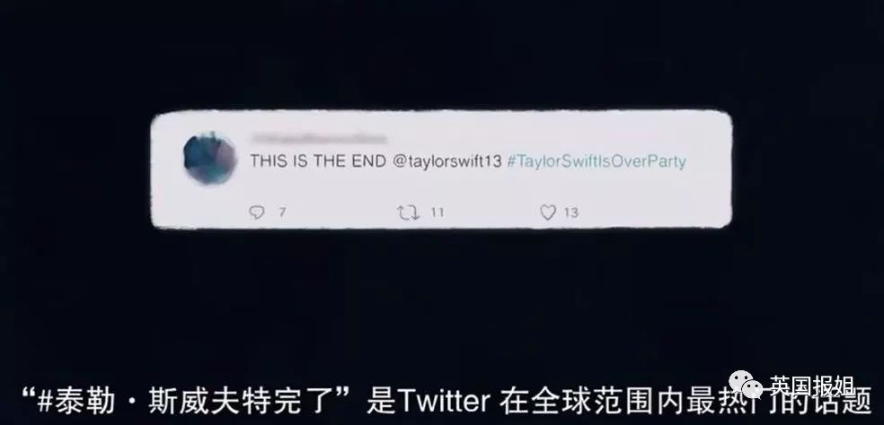 就像那次,世界趋势上出现了话题:“talorswiftisoverparty“(祝贺泰克斯威夫特完蛋),她崩溃了。