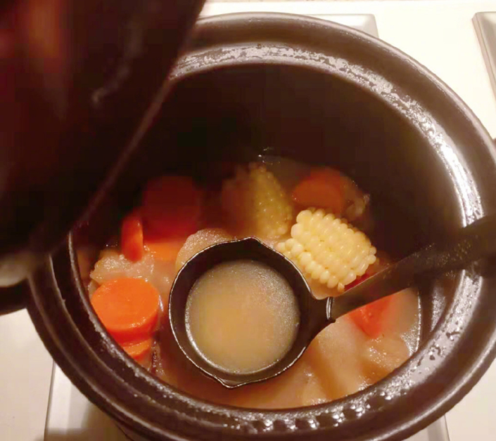 另一道则是炖汤,用砂煲炖汤,杨幂在汤方面也是非常讲究,看锅里浓浓的汤汁,看来也很是可口。看完这两道菜,是不是让大家刮目相看呢,没想到一直忙工作的杨幂还有这一手呢。