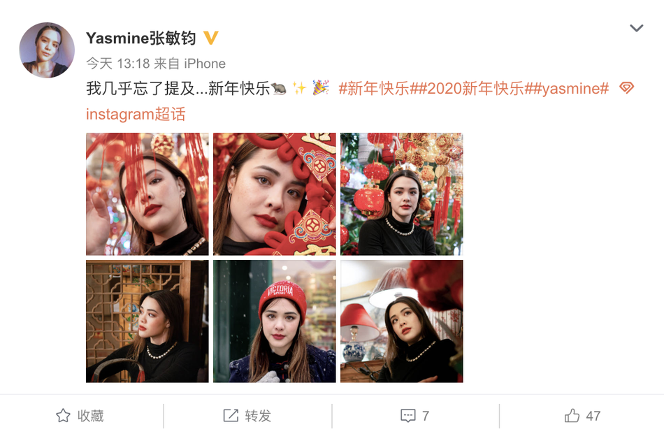 Yasmine晒照祝大家新年快乐。