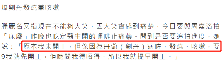 滕丽名之所以提前开工,其实还有一个原因是刘丹生病,所以只有滕丽名先顶上。据悉刘丹有发热、咳嗽的症状,这段时间应该是在积极的调整治疗。