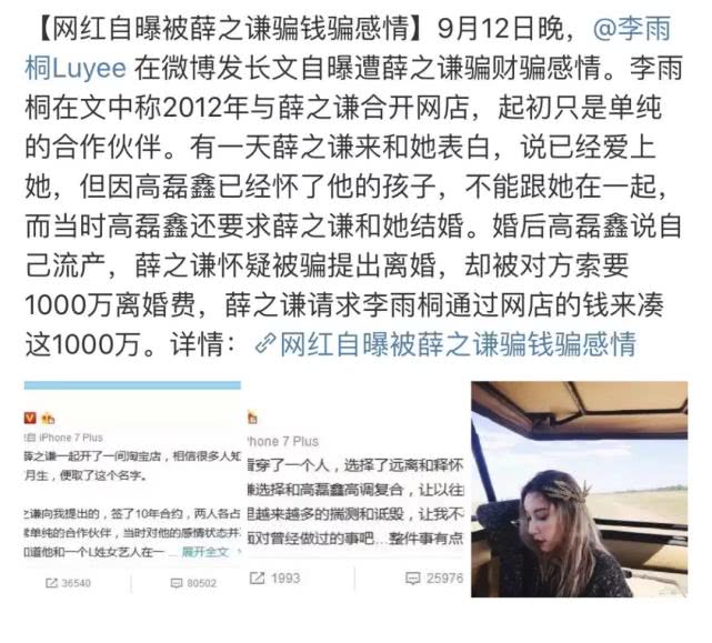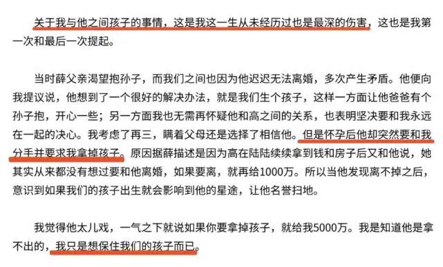 不仅如此,还甩出了薛之谦的各种黑料,称薛之谦用离婚借口骗取她的钱财,用自己出车祸受伤的照片发微博炒作......还自爆怀过薛之谦的孩子,换来的却是被要求打掉孩子和被分手......